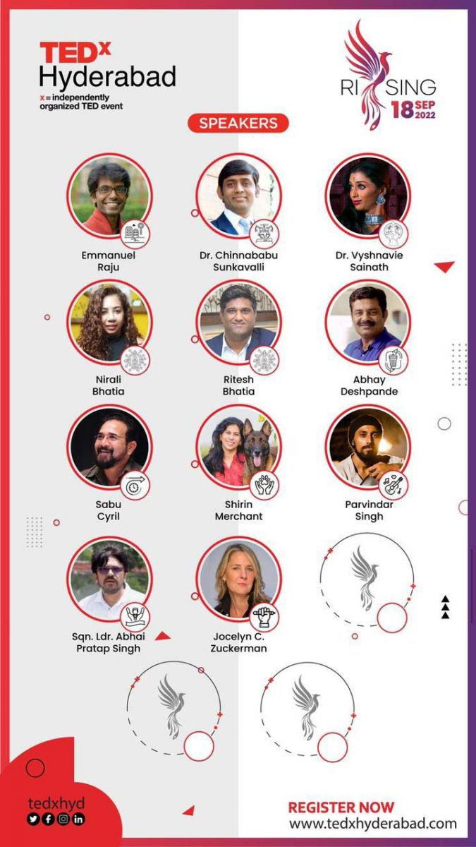 The TEDxHyderabad event line-up includes eminent personalities like: